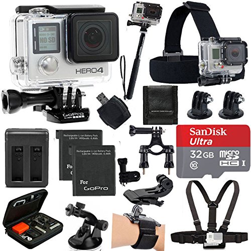 link : GoPro HERO4 Black Edition Camera HD Camcorder With Deluxe Carrying Case + Head Strap + Chest Strap + 2 Battery And Dual Charger + 32GB SDHC MicroSD Memory Card Complete Deluxe Accessory Bundle