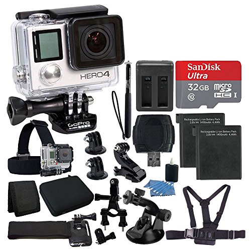 link : GoPro HERO4 SILVER Edition Camera HD Camcorder With Deluxe Carrying Case + Head Strap + Chest Strap + 2 Battery And Dual Charger + 32GB SDHC MicroSD Memory Card Complete Deluxe Accessory Bundle