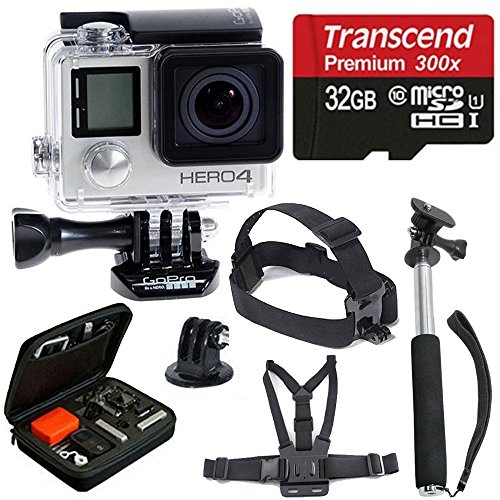 link : GoPro HERO4 SILVER Edition Camera HD Camcorder With Deluxe Carrying Case + Head Strap + Chest Strap + Monopod + 32GB SDHC MicroSD Memory Card Complete Deluxe Accessory Bundle