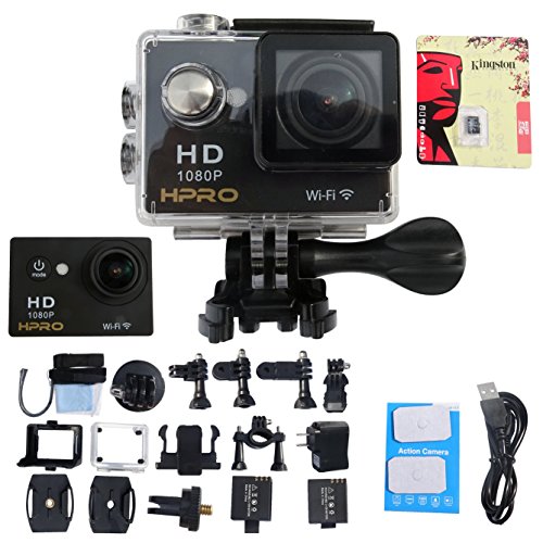 link : HPRO Black 4.0 Sports Action Waterproof Camera 170° Wide View Full HD1080p 12MP 30m/92 Feet Water Resistant WiFi Enabled 22 Accessories SD Card DVR Sport Action DV Camcorder