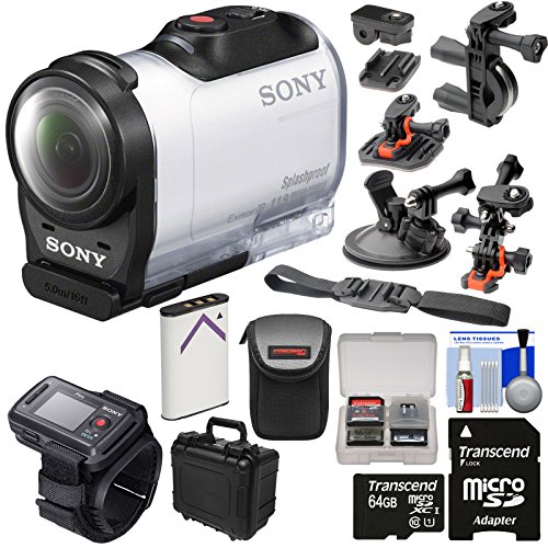 Sony Action Cam HDR-AZ1 Mini HD Video Camera Camcorder & Live View Remote with 64GB Card + Battery + 2 Helmet, Flat Surface, Suction Cup & Handlebar Mounts + 2 Cases Kit