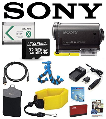 Sony HDR-AS20/B AS20 AS20/B HDRAS20/B POV Action Cam w/ Battery, Flexpod, LowePro Case, Floating Strap, 32GB Accessory Kit