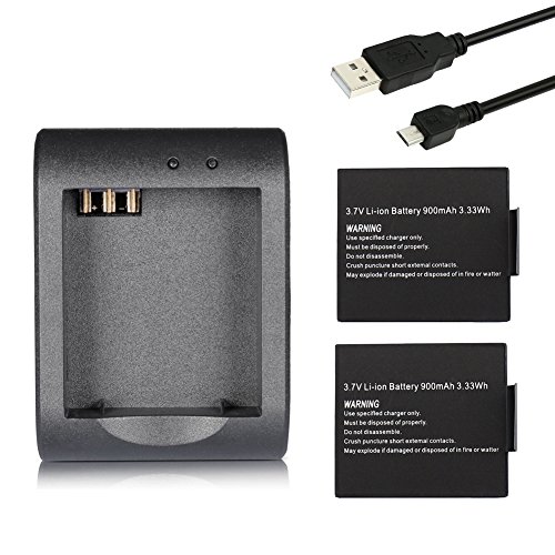 TEKCAM Rechargeable Battery for Waterproof Action Camera (2 x 900mAh Battery+Charger )