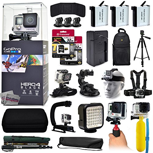 link : GoPro Hero 4 HERO4 Black CHDHX-401 with 64GB Memory + 3x Batteries + Travel Charger + Backpack + 60" Tripod + Head/Chest Strap + Suction Cup + Hand Glove + LED Light + Stabilizer + Case + More!