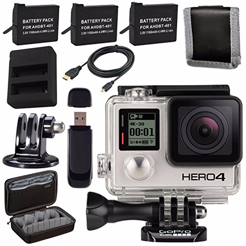 link : GoPro HERO4 Black + Rechargeable Battery + Dual Battery Charger + Case for GoPro HERO4 and GoPro Accessories + Tripod Adapter For GoPro Bundle