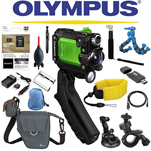 link : Olympus Stylus Tough TG-Tracker Wifi Action Camera (Green) + Sony 32GB MicroSD Card + Floating Strap + Flexpod + Case + Travel Charger + Battery + Suction Mount + Bike Mount + Selfie