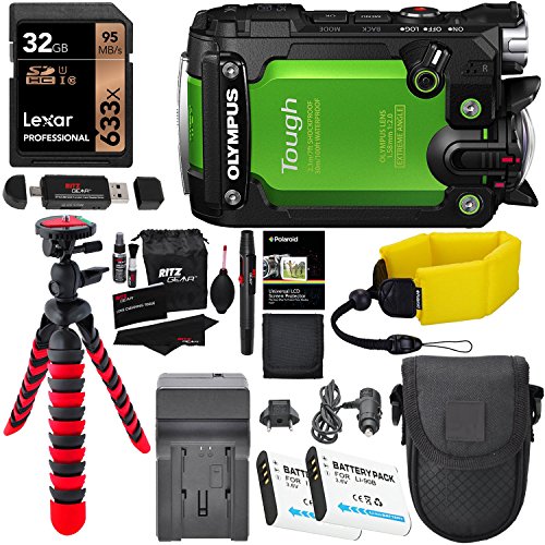 link : Olympus TG-Tracker Waterproof Camera (Green), Lexar 32GB, Polaroid Floating Strap, Battery, Charger, RitzGear Tripod, Camera Case and Accessory Bundle