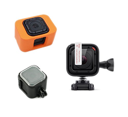Protective Orange Floaty Specially designed, and fit perfectly with GoPro Hero 4 Session. Made of Styrofoam, no harm to people, environmental-friendly. Size 7.5cmX5.5cmX4cm Lens Films PET Screen Protectors Made of Polyethylene Terephthalate that protects the original screen from shattering. Bubble free and dust free. No Rainbow effects Easy to install. Easy to remove without residue. Package Included: 1 X Protective Orange Floaty 6 X Lens Films PET Screen Protectors 1 X Transparent Lens Cap Cover Note: Camera, Frame Case + base mount + screw, are excluded. Orange Floaty + Lens Films (6pcs) + Lens Cap Cover only, camera and black frame mount excludedBright Orange Floaty is easy-to-spot, keep your Hero 4 session afloat with cushiony padding