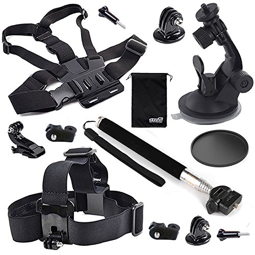 link : EEEKit 4in1 Starter Kit for For Gopro/Gopro Style/1/4 inch Screw Action Cameres, Head Strap/Chest Body Harness/ Car Dashboard Mount, Selfie Stick Pole