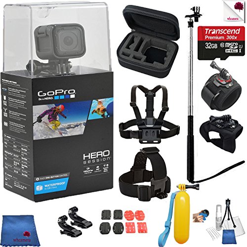 link : Gopro Hero 4 Session 12 Piece On The Run Bundle Includes: Go Pro Hero4 Session+ Case + Chest Strap + Head Strap + Wrist Mount + Glove Mount + Monopod + More