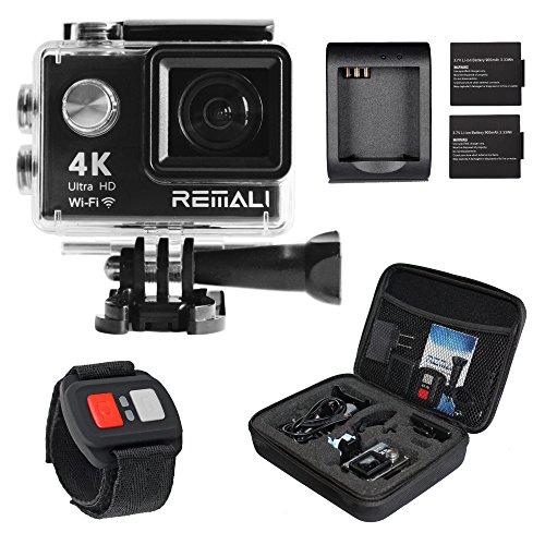 link : REMALI 4K Ultra HD Sports Action Camera, 1080P@60fps, 12MP, WIFI, Waterproof 30m, 2.4G Remote, 170° Wide Angle, 2" HD LCD Screen, 6 Layer Lens, Extra Battery, Charger, Carrying Case, Accessories
