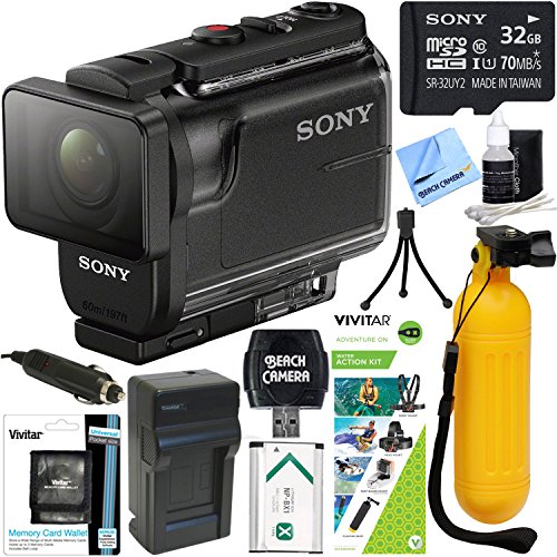 Action Cam turns everyday experiences into extraordinary memories. Take your camera everywhere - even take it underwater with the included waterproof housing. Shoot playful points of view and enjoy every day moviemaking in Full HD, plus advanced features like SteadyShot, 4K time-lapse capture and more. It's the casual, fun camera that's ready when you are. Advanced intelligent SteadyShot image stabilization reduces blur From the rockiest trail to the wildest surf, you want to shoot crisp, clear video your audience will actually enjoy watching. Advanced intelligent SteadyShot image stabilization reduces blur by normalizing the oscillation the image brings to the sensor. This means motion blur and noise levels are reduced, even in low light. Full camera control via Wi-Fi and Bluetooth with new Live View Remote and Smartphone With Live-View Remote RM-LVR3 or compatible smartphone you can control up to five cameras at the same time. With Bluetooth compatibility connecting to your camera is a cinch. You can power on and off your cameras, change settings, and start and stop record easily. These convenient features allow you to enjoy your moments and those you share them with in addition to savoring the memories. Share the adventure as it happens via Ustream live streaming. Now your circle of friends and family can share the excitement in real time by simply logging in to UStream from anywhere. You can also link your favorite social accounts with the streaming to notify your friends...Sony HDR-AS50/B Full HD Action Camera + Water Action KitBundle includes: Sony 32GB micro SDHC Class 10 UHS-1 Memory Card