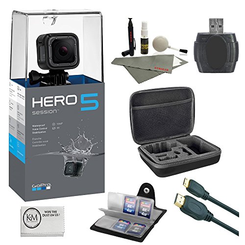 link : GoPro HERO 5 Session + 64 GB Micro SD + Card Reader + 6 ft HDMI Cable + Memory Card Wallet + Cleaning Kit + Camera Case (7 items)