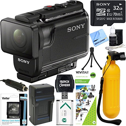 Action Cam turns everyday experiences into extraordinary memories. Take your camera everywhere - even take it underwater with the included waterproof housing. Shoot playful points of view and enjoy every day moviemaking in Full HD, plus advanced features like SteadyShot, 4K time-lapse capture and more. It's the casual, fun camera that's ready when you are. Advanced intelligent SteadyShot image stabilization reduces blur From the rockiest trail to the wildest surf, you want to shoot crisp, clear video your audience will actually enjoy watching. Advanced intelligent SteadyShot image stabilization reduces blur by normalizing the oscillation the image brings to the sensor. This means motion blur and noise levels are reduced, even in low light. Full camera control via Wi-Fi and Bluetooth with new Live View Remote and Smartphone With Live-View Remote RM-LVR3 or compatible smartphone you can control up to five cameras at the same time. With Bluetooth compatibility connecting to your camera is a cinch. You can power on and off your cameras, change settings, and start and stop record easily. These convenient features allow you to enjoy your moments and those you share them with in addition to savoring the memories. Share the adventure as it happens via Ustream live streaming. Now your circle of friends and family can share the excitement in real time by simply logging in to UStream from anywhere. You can also link your favorite social accounts with the streaming to notify your friends...Sony HDR-AS50/B Full HD Action Camera + Outdoor Action KitBundle includes: Sony 32GB micro SDHC Class 10 UHS-1 Memory Card